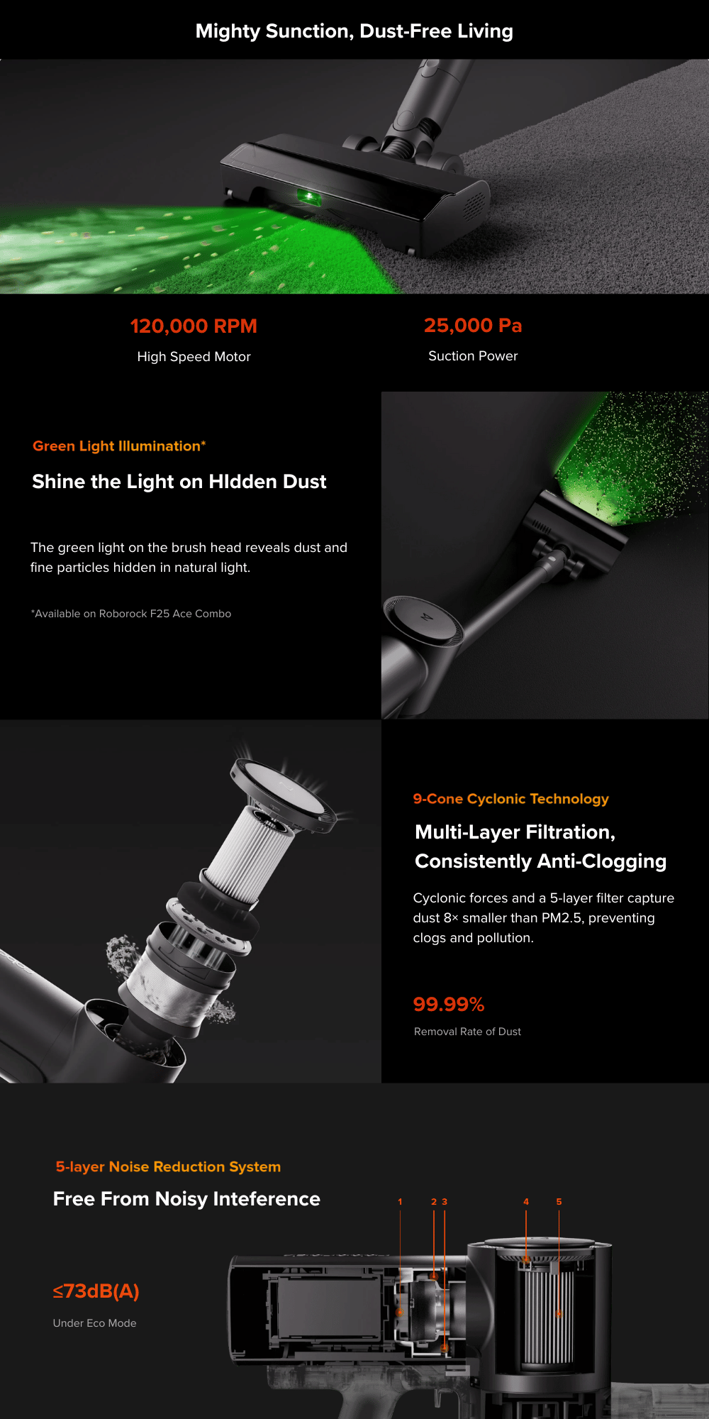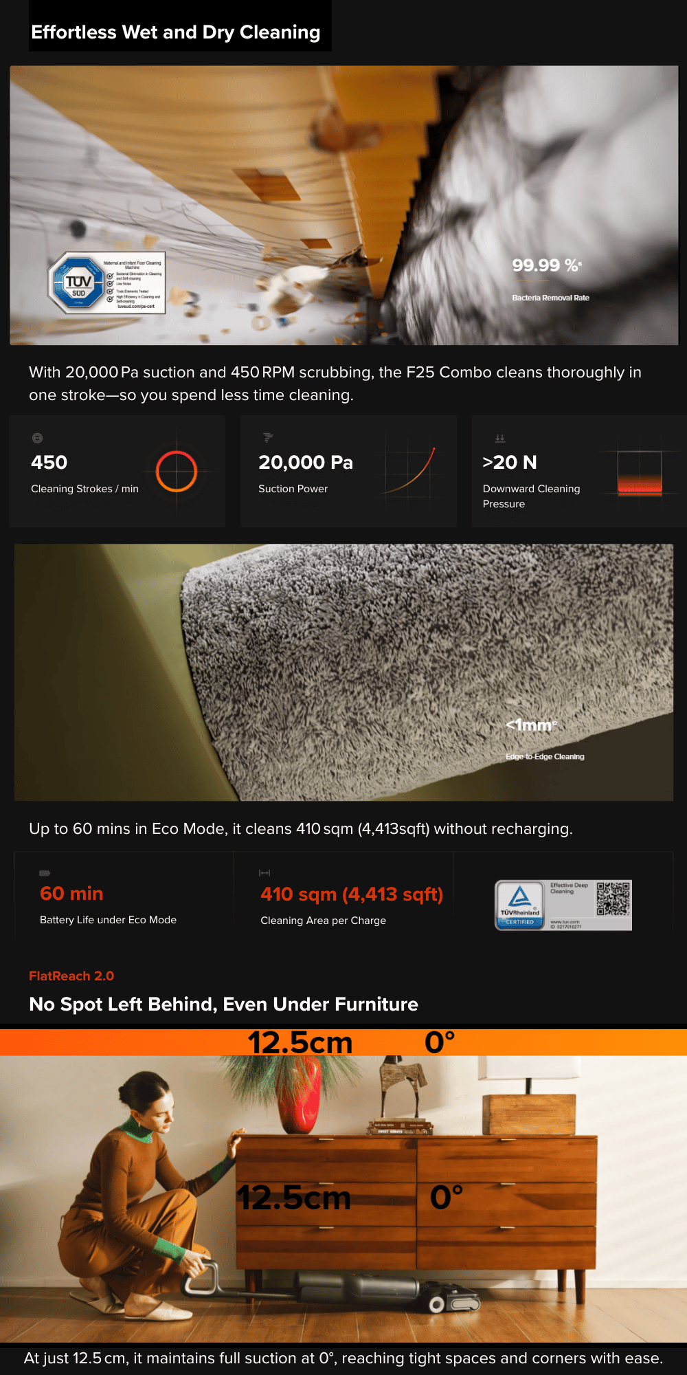 - 20000Pa Powerful Suction
