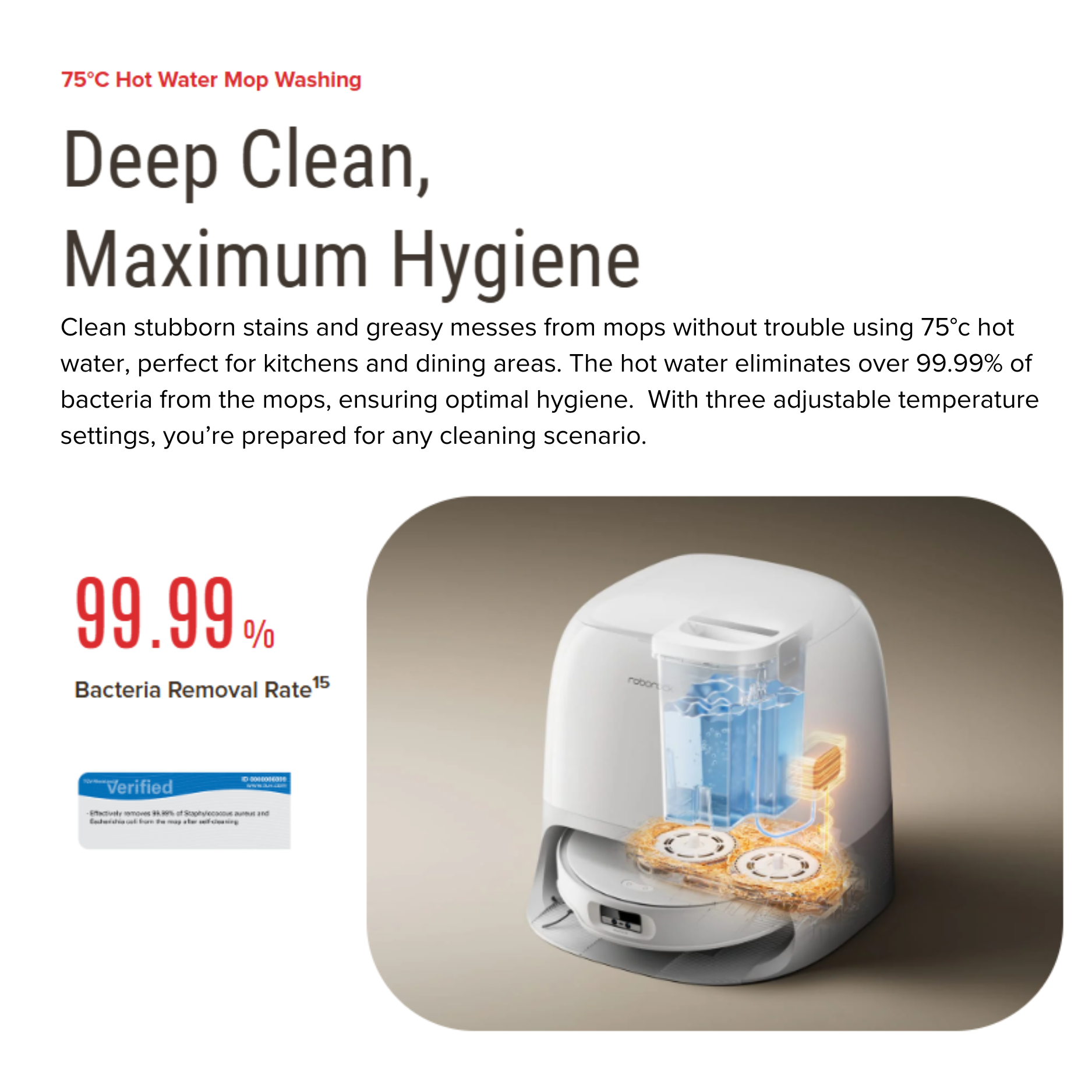 - 167°F (75°C) Hot Water Mop Washing