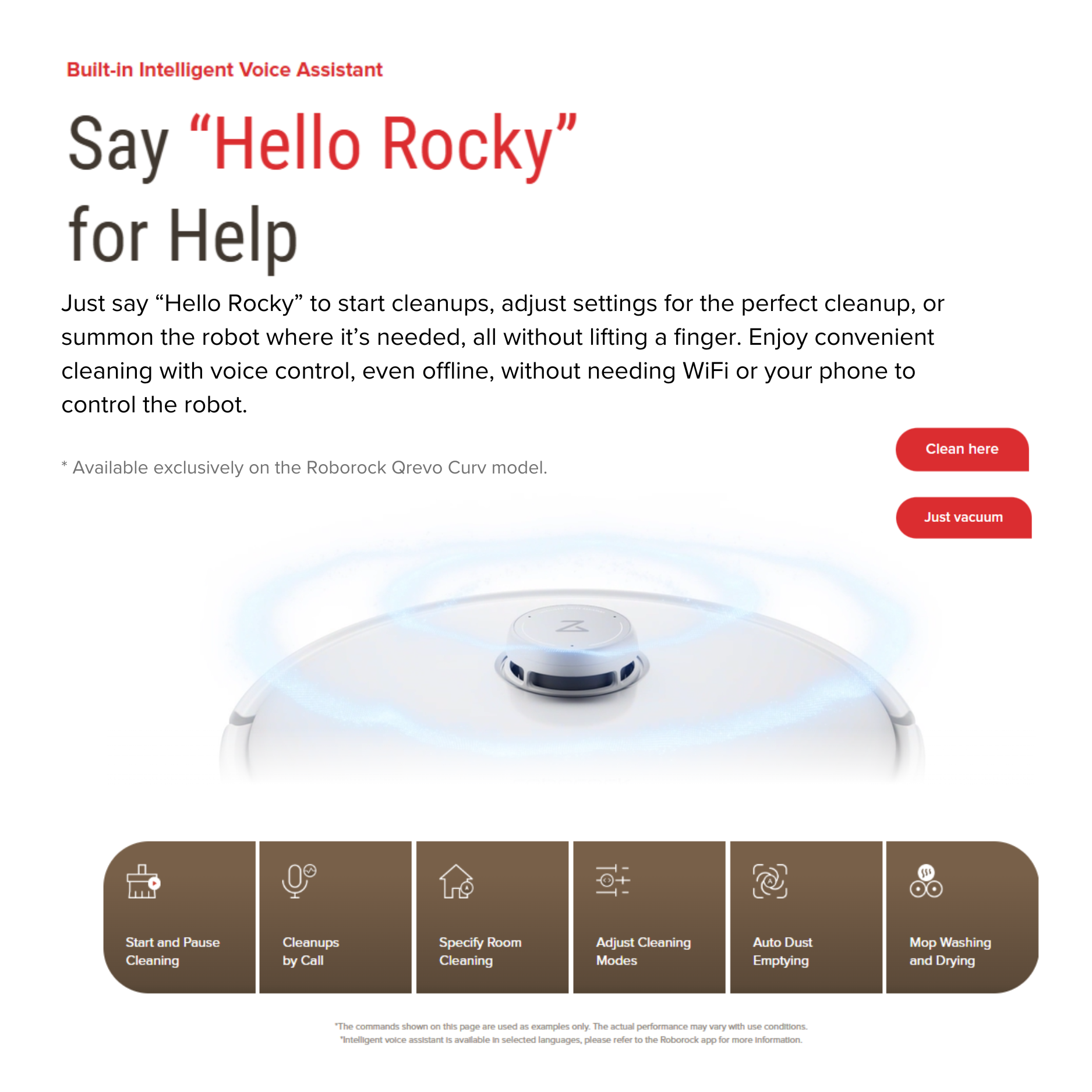- “Hello Rocky” Intelligent Voice Assistant ( Qrevo Curv )